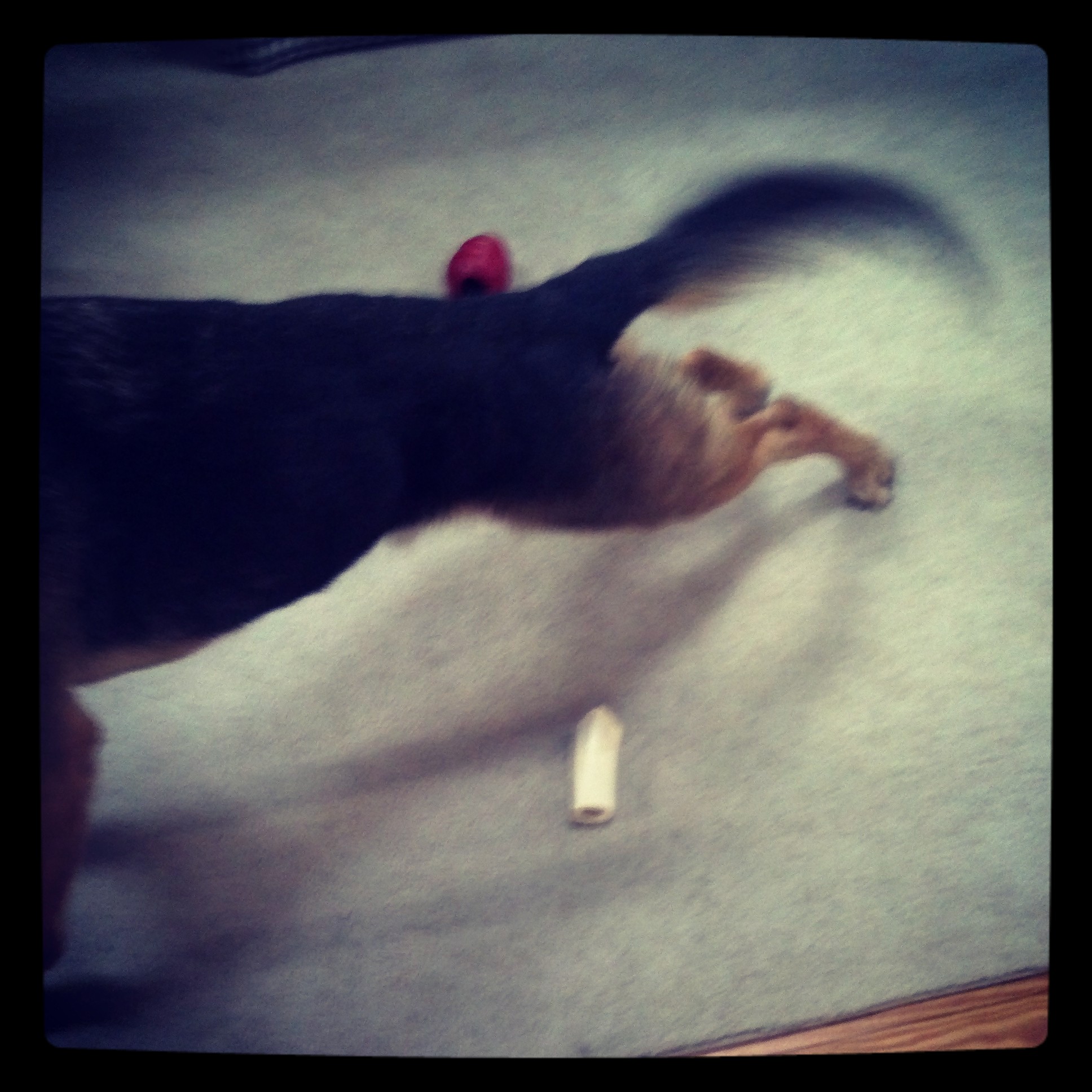 Not long ago during an afternoon break between job one and job two I sat in a quirky White River Junction coffee shop thinking about my Clarence-the-Canine, reflecting on images in my mind’s eye of the unmistakable changes in his gait over the last few weeks.  Then I did what you’re not supposed to do:  I opened my laptop and started Googling his symptoms.  I had wondered about the possible emergence of hip dysplasia, which is not uncommon in shepherds and other large breeds.  But I found it odd that the onset of these symptoms–a drunken clumsiness, mainly, gathering instability in his back legs, and “bunny hopping” while running full tilt, where the back legs push off in unison instead of one after the other as they should–corresponded more or less with my (temporary) retirement from running this past September.  Why would he get worse if we were not running?  If he had hip dysplasia, wouldn’t rest make him feel better?  This was a disquieting notion.