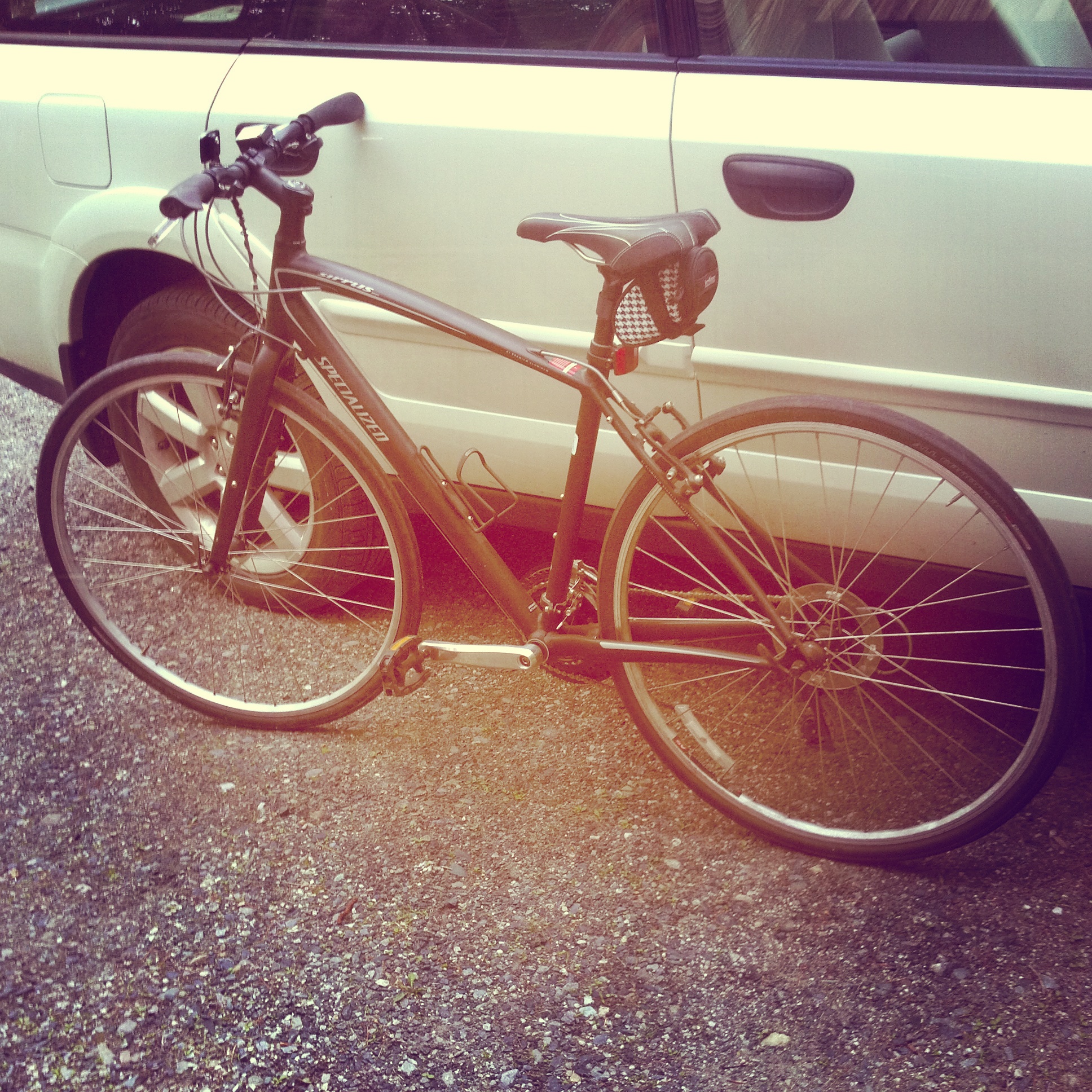 That is my bicycle up there in the photo. I bought it about three years ago when my foot was acting up and I was in pretty intense physical therapy twice weekly. My orthopedist sanctioned biking as an alternative to running. I rode 26 miles every single day of the week. This is a true story. But that is how much I needed to ride to derive the same benefits (read: euphoric afterglow) from a much shorter run. Back then I had the luxury of time, though. Now I am carving it out when I am able between two jobs, and three starting in August. So a nice ten-mile ride a couple of times a week is what I can manage at the moment. It is better than nothing at all which was more or less my situation during the winter.