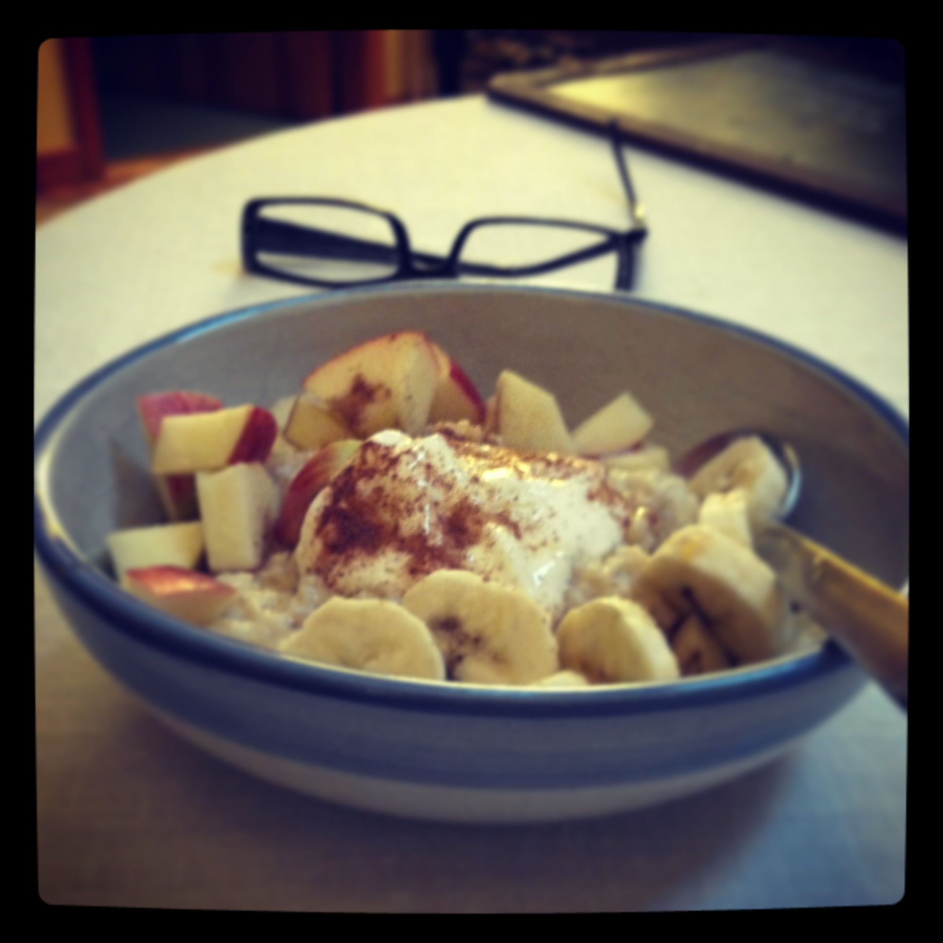 This rainy Vermont Wednesday morning the air outside is clean scrubbed. Inside a little of the the maple-cinnamon oatmeal I made earlier still hangs in the air, along with the summery fresh watermelon I just cubed for my lunch. I raise my coffee cup to you and your Wednesday. (And to you, Dad; thanks.)
