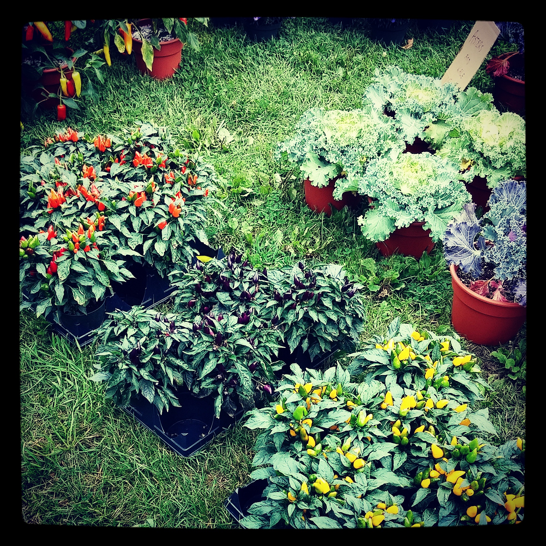 The cool and slightly rainy day had prompted merchants to begin breaking down their tents by the time we arrived at the big farmers’ and flea market in Wilmington but we still scored some beautiful yellow mums to take to Brattleboro, along with two gorgeous pepper plants for ourselves, and probably the best tomatoes I’ve seen all summer. Gracie would approve.