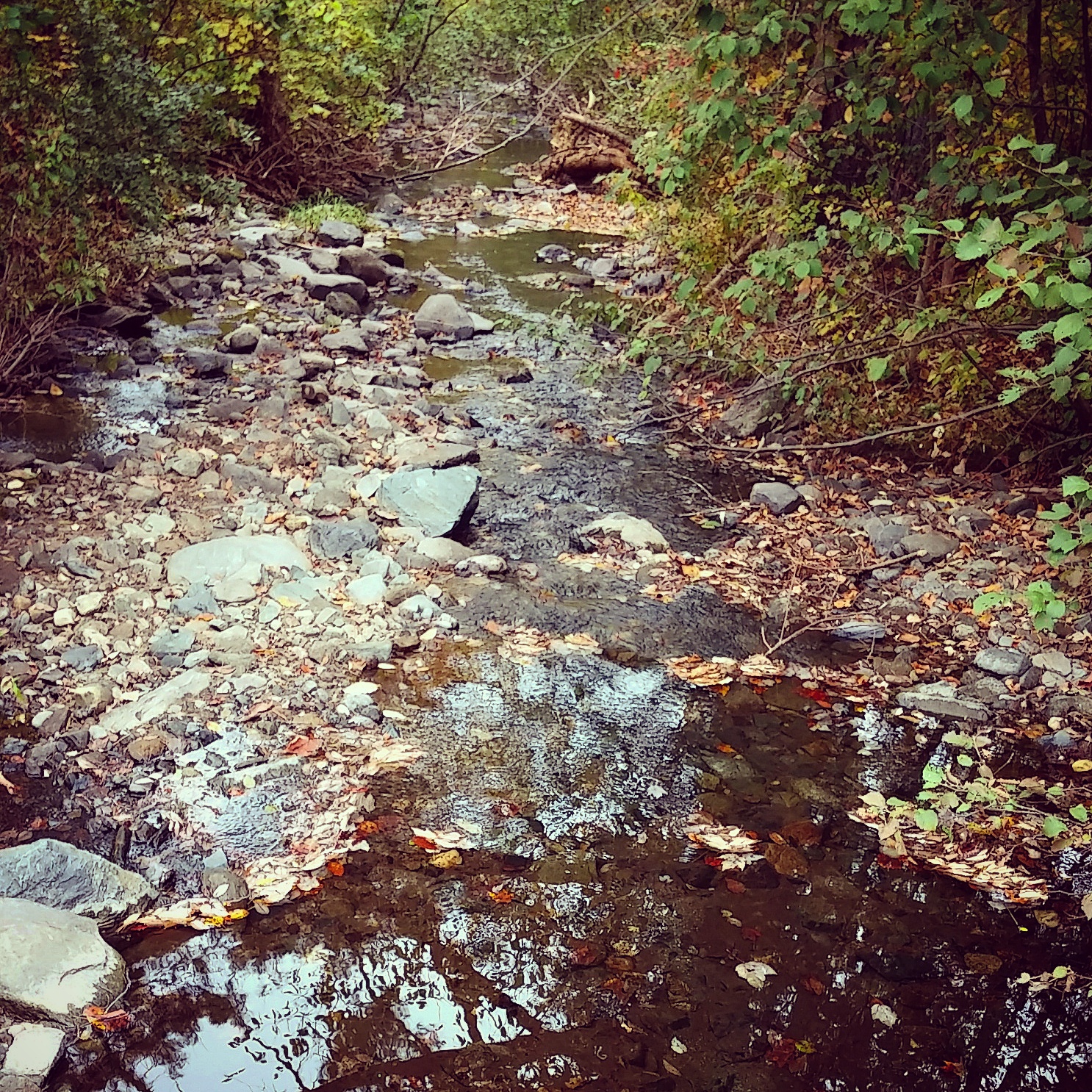 I turned my back on the highway to head back down the driveway. I sat on the wood bridge leading onto the property and dangled my feet from it for a while. There is a sensory collision here of the freshness and roiling from moving water and cars zipping up and down the rural highway parallel to the stream.