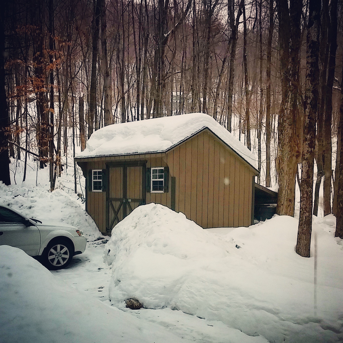 The snow falls in layers, too, each one clearly visible, each marking a separate winter storm, packed down by weight and gravity, but also diminished by melting. You can see them on the roof of the tool shed. I was feeling packed down when I stepped into Vermont. Less so now, with the coming of another spring, with the accretional layers of a little wisdom, or as a friend once said, the tincture of time, and helped along by some melting. Soon this winter will be a memory, not before there is more snow, maybe some ice, some sliding around on the road with white knuckles, a little more biting cold.