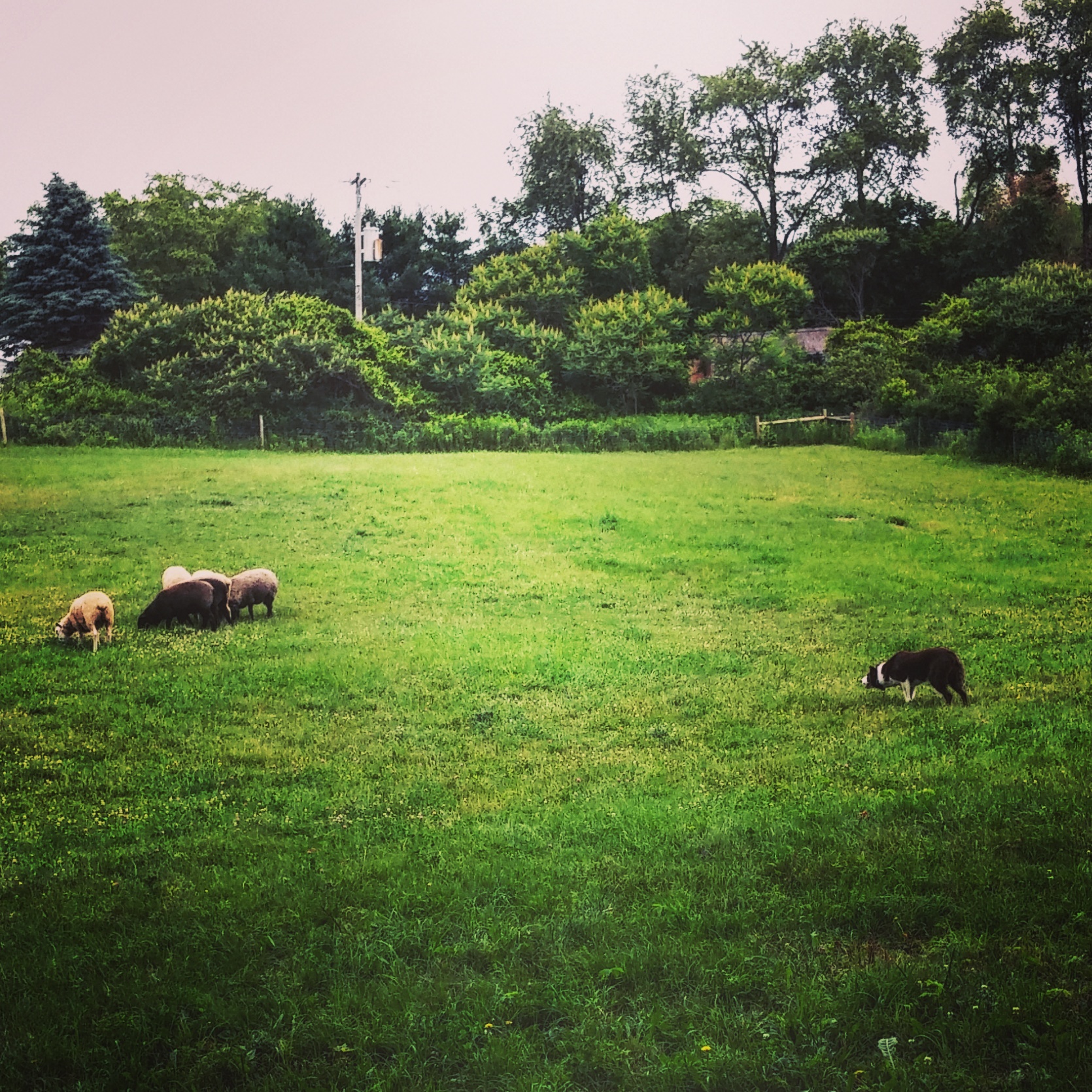 Jon’s Border Collie Red is an amazing creature, and that is all. I never tire of watching him do the work he is driven to do, nor of Jon’s telling of that story to the focused crowds who gather under the enormous tree at the paddock gate to hear it. This time there was Fate, the new puppy whose arrival so many of us followed in the days and weeks leading to the open house; there was understandably much anticipation and excitement to see her. She demonstrated a beautiful and accommodating temperament and work ethic and will grow into a brilliant herding dog, I am sure. Still, I am drawn to Red for his maturity and serious demeanor, matched only by his generosity and affection. I am always struck by his intelligence and now also by his tolerance for a young interloper. They each seem to understand the new world order and comply willingly with it.
