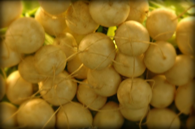 My struggle to bring images into focus in low light with limited equipment and expertise seems oddly appropriate since the bounty of the season remains blurry at best. An extreme example at this little eatery where we had lunch, Part II: