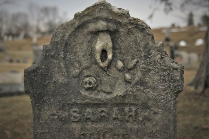 The headstone of a child, though, is always so sad to me. I squatted down to get a closer look at a few of them while Scout explored with his nose like any self-respecting canine would. Don’t hike your leg on a headstone, I am thinking, please: here is a place to be reverential. Then I wonder, does Scout know where we are already? Can a dog smell human suffering?