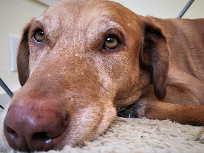 But today, silent woman was hanging out clothing on a line, a mystery to us in the cold and damp, but there she was doing it just the same. And the hanging out of the clothing occurred very close to the place of business. When you have been cooped up inside for a while, and you need to take care of business, and a person is hanging menacing clothing whose sleeves flap this way and that in the wind, you must do something, and it is this: you must bark, and bark loudly. You must stand your ground, throw back your head, and bay like a hound even though you are not one, at the flapping sleeves and the clothes-hanging woman. Your human will apologize to the woman and try to shush you, but it is to no avail, because this action is incumbent upon you.