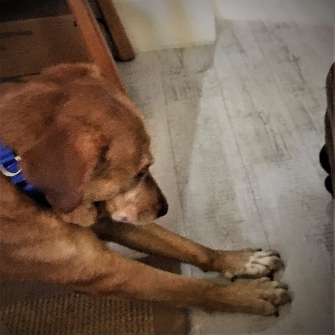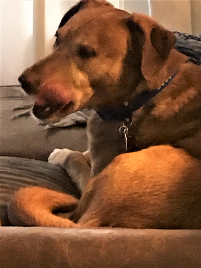 On Friday night David-the-Chef made salmon for our supper, and as he always does, crisped the skins in the hot pan next to our fish. These make the most delectable dog treats, with a little of the salmon meat still clinging to them. Scout-the-Labish never turns down a piece of crisped salmon skin. In fact, he never turns down a piece formerly crisped salmon skin that’s been in the fridge for a couple of days, because salmon is just too good whatever its form. And here, by the way, is how the salmon looked plated, although the chef was mortified I made a photo because he said the food was ‘ugly.’ Compared to what, I’d like to know. And Scout almost always scores some tender bits of our salmon, too, hand fed to him a morsel at a time from a human plate. Life is good, mainly.