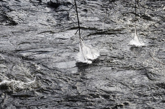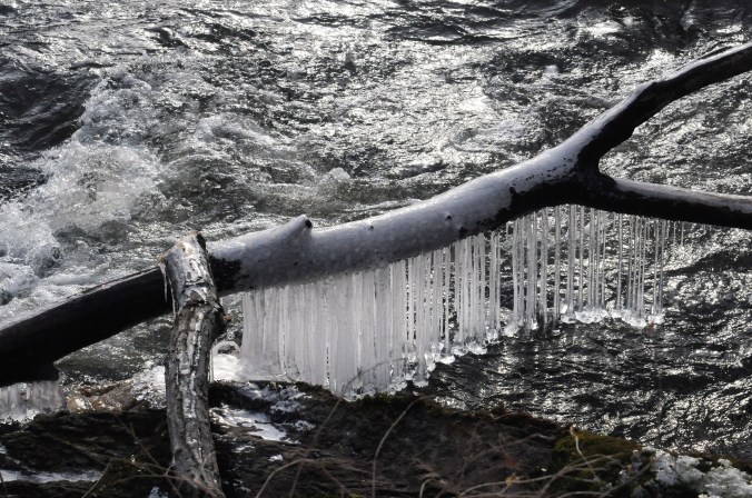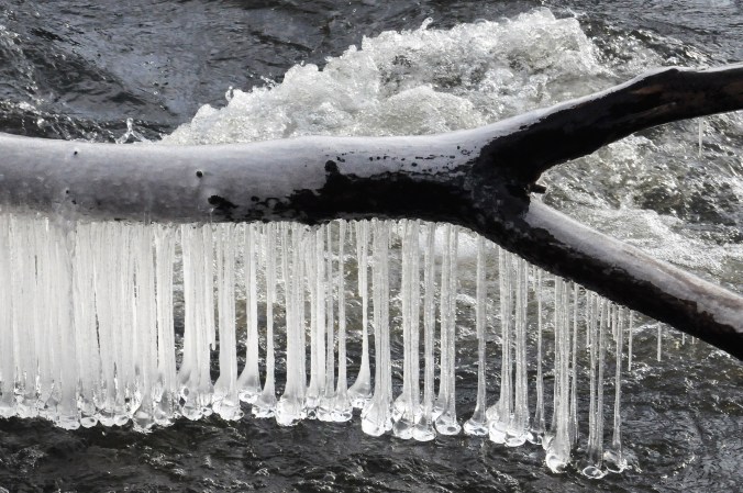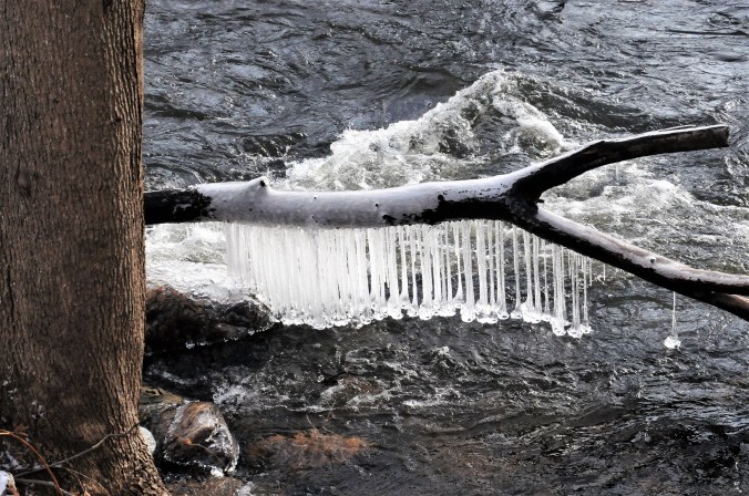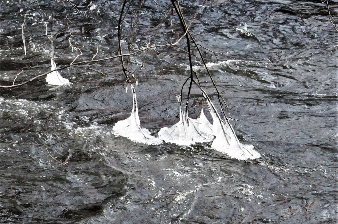 Chef David came inside from an outside task yesterday and said, You should look at the ice formations where the river has grabbed the trees. It’s photo-worthy.