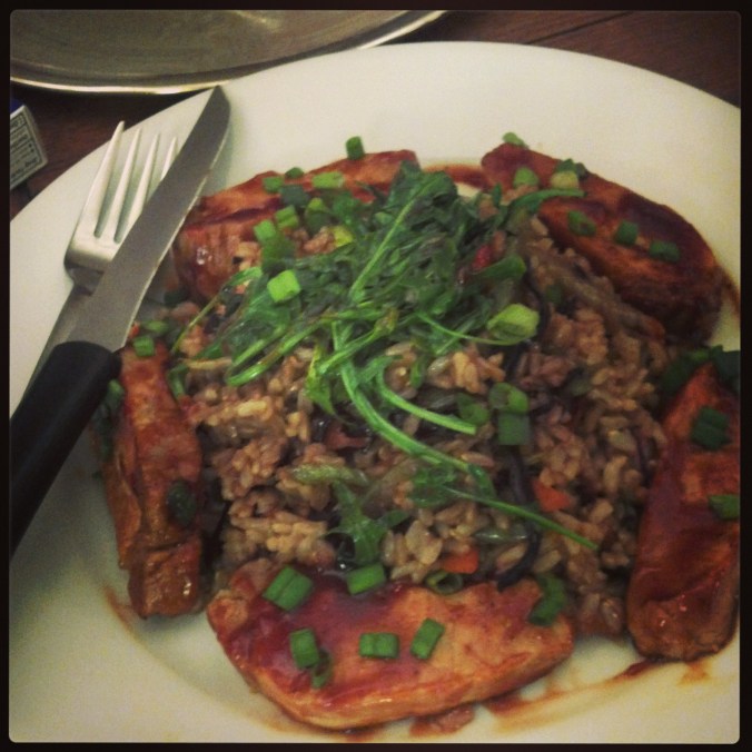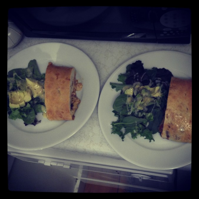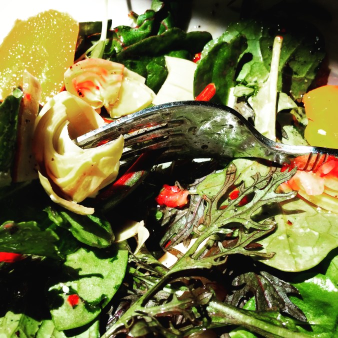Last night Chef David and I watched The Hundred-Foot Journey, an inspired movie about life and love and beautiful food (and you know you can’t go wrong with Helen Mirren)—the scenery alone is worth your time, to say nothing of the enchanting score: go find it and watch it if you haven’t already, or watch it again if you have. We’re all about thoughtful cuisine in this house, but not pretentious cuisine—what we like to call food prepared with ‘tweezers and fog.’ The salad in that photo up there was my lunch today. Here are some other memorable images of our culinary life together over the past six-plus years, another antidote to long, grey, Vermont winter days.