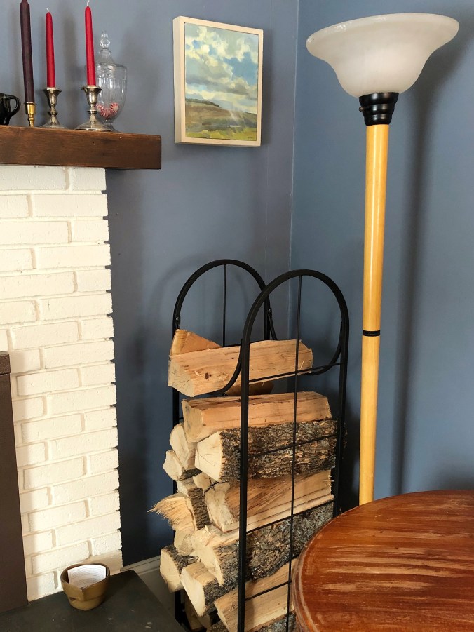And we are almost out of firewood: we have what you see in the photo, plus a bit more stacked on the front porch. No big deal. We don’t depend on it to heat our house, as I did in the beautiful but isolated Vermont loft where I lived between 2013 and 2015. But we think keeping a fire going most nights and over the weekend is putting a dent in our oil consumption and our electric bill. Last year we were too busy dotting I’s and crossing T’s to think about details like firewood, and it was already a tad late by our closing in November, to source some seasoned wood. Not so this winter.
