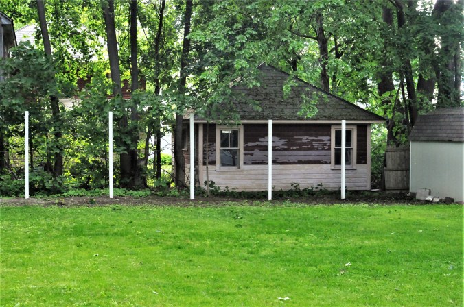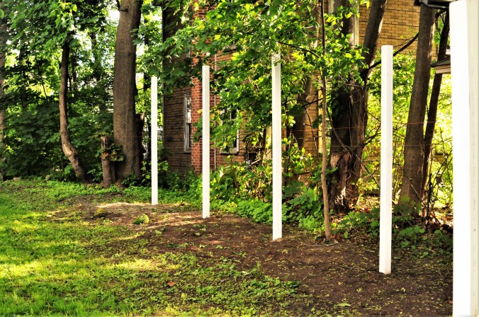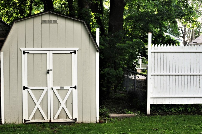 But here is where the gate will go, between the TOOL SHED and the first section of new fence, completed last summer: