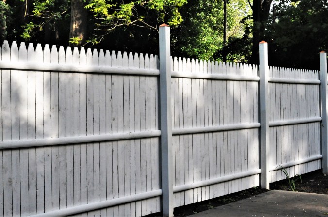 Meanwhile, the fence project continues this summer, and we believe by the time fall rolls around, it will be completely finished, or at least very close. Here is the second section David started last summer, now with its final coat of paint and pretty copper caps: