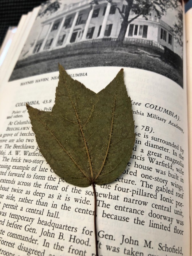 I don’t know the type of leaf (please tell me if you do). But what a rare and wonderful treasure pressed between the pages of this book to inspire our upcoming adventures. And all this makes me realize, I really do love Tennessee. And though I may never live there again, I remain deeply connected to its earth, like my own struggling farmer ancestors were.