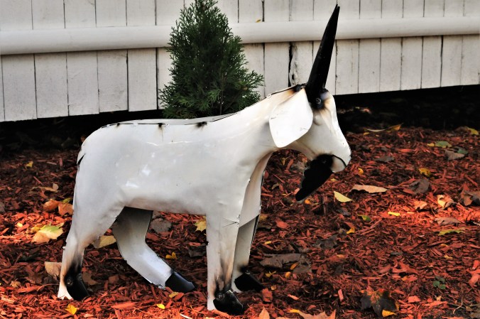 I love the Goat!! My sister in law has a giant chicken in her yard, another has a large sculpture of a moose out of found objects (think tractor parts), and my youngest sister has a large Tiki statue…. I think I will need to add something like that to my yard. I may be the last one on the planet without a life size metal sculpture in my yard.