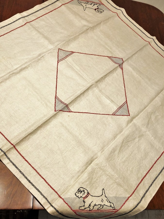 Here was today’s takeaway. It’s perhaps a tablecloth, fairly ancient, I believe, all linen, I’m pretty sure, probably made for a child.
