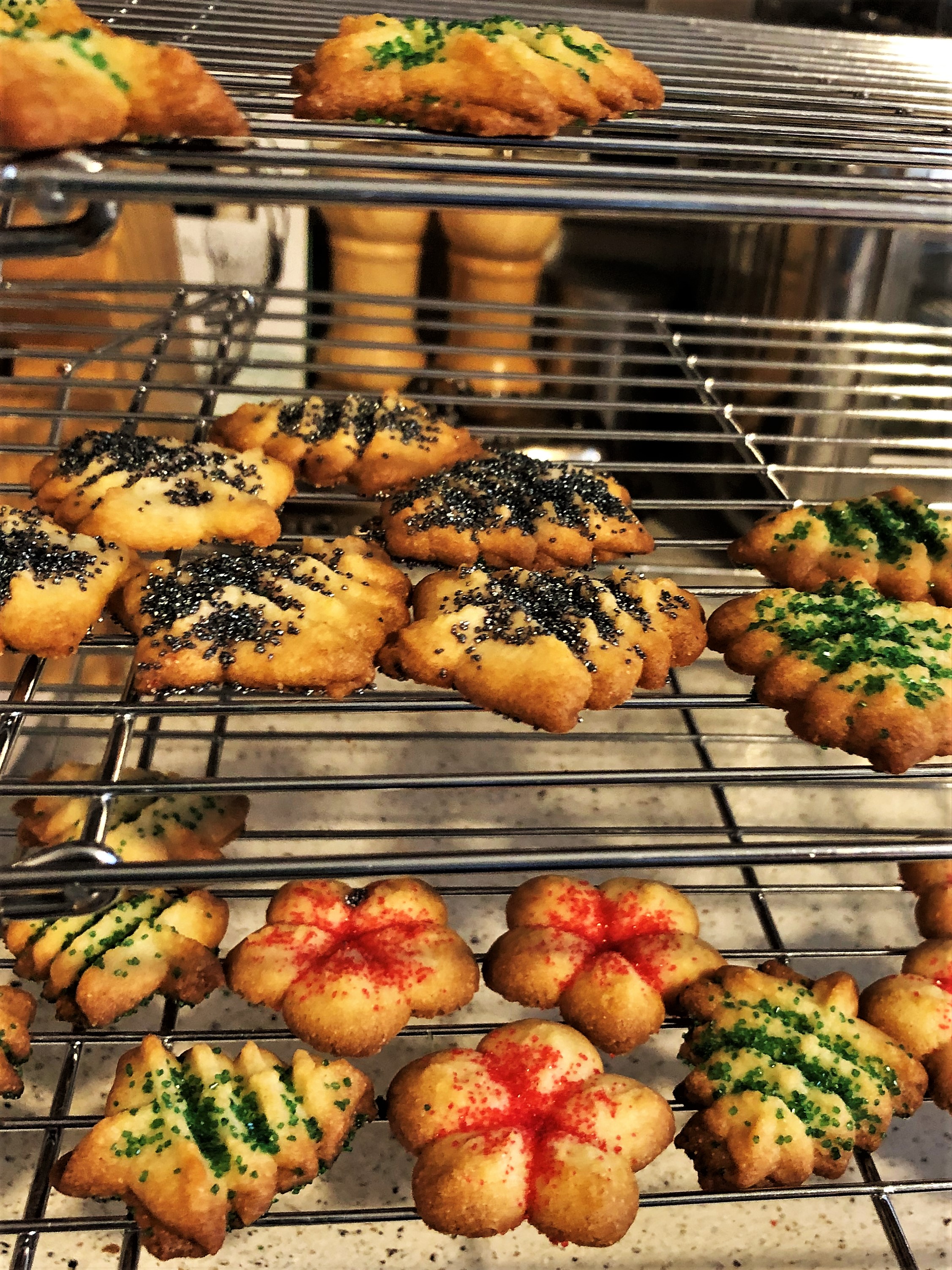 Today when my irreverent twenty-something video messaged me, I explained I was making cookie press cookies. He watched me mix in the flour and work the batter until the dough was the right consistency to extrude through the press. I said the last time I used this little device he was still in elementary school, and lamented he wasn’t here now to make cookies with me.