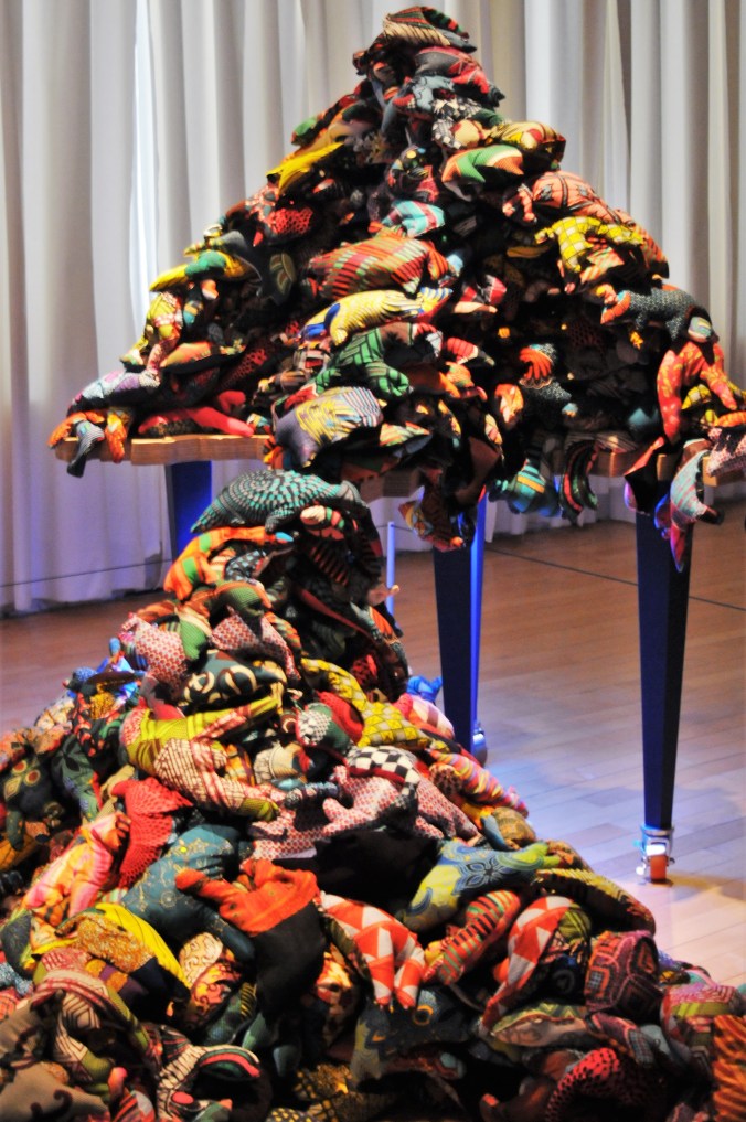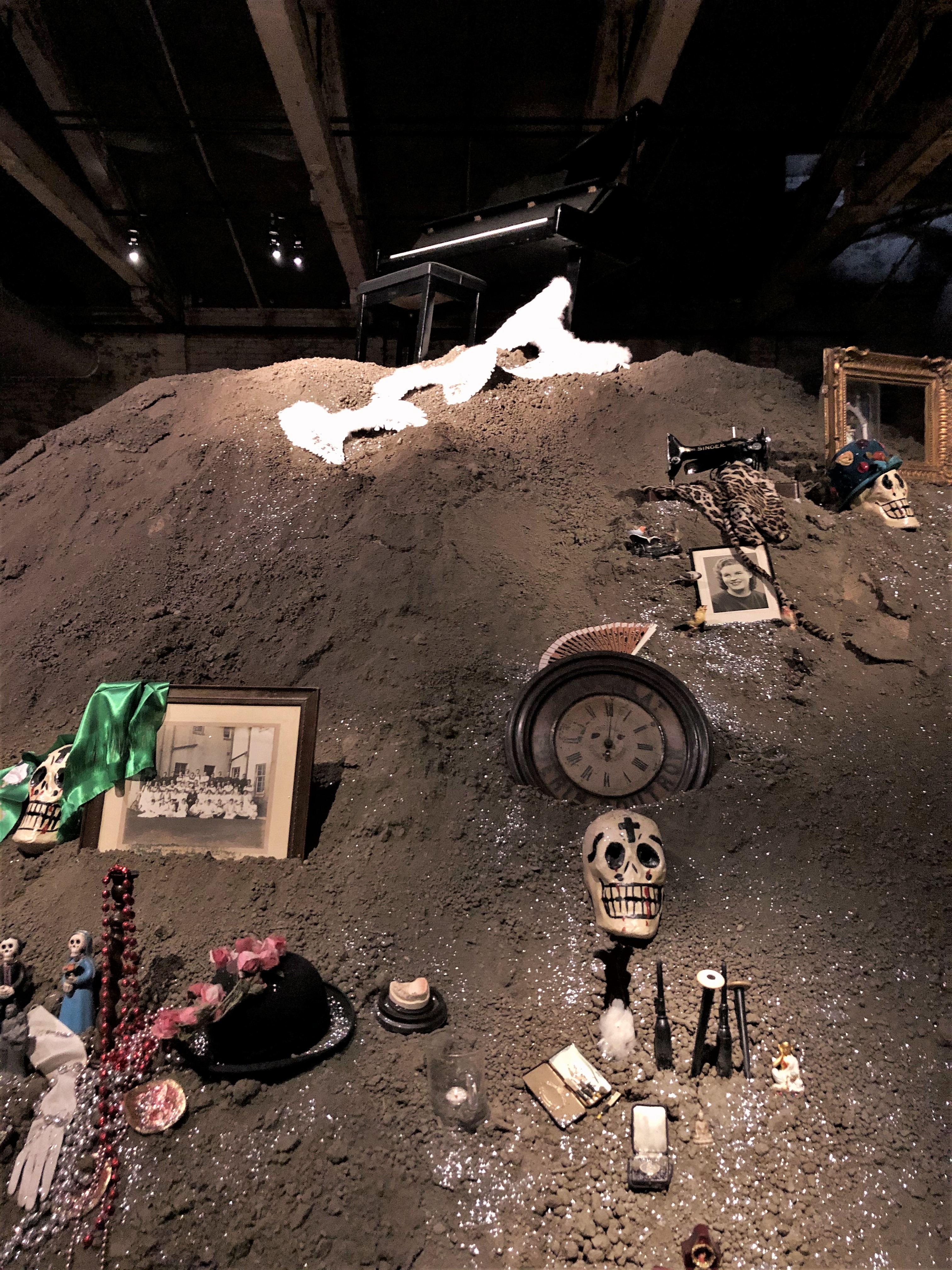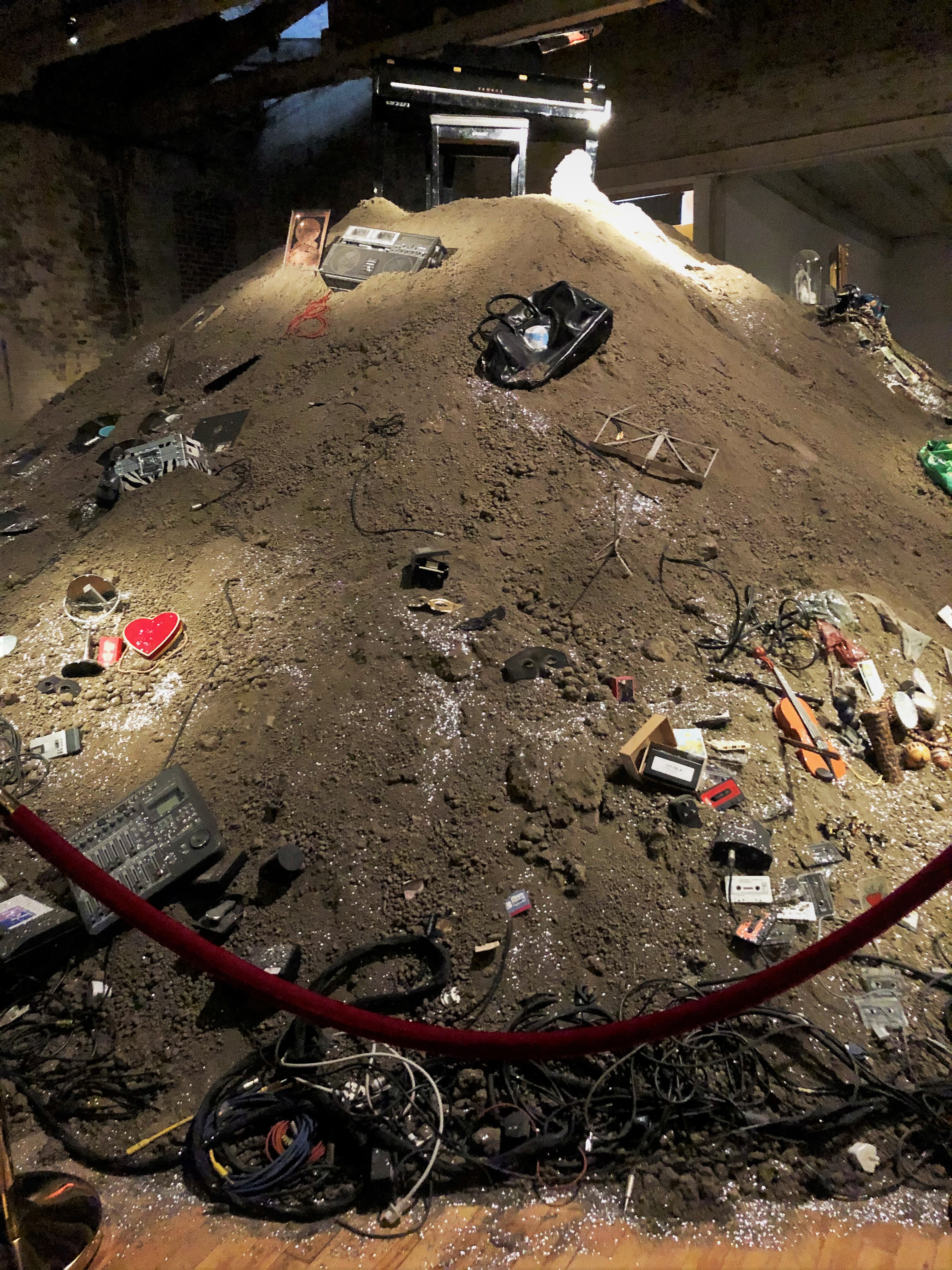 I was anxious to see ‘Now I Let You Go…’ by Annie Lennox, a dark and difficult-to-shoot collection of artifacts from her life, scattered about on massive piles of soil sprinkled with glitter, evocative of a landfill. In an artist’s statement she says, “We cling, consciously or unconsciously, to “things” that are endowed with significance—keeping memories alive, while the uncomfortable awareness of the inevitable moment of departure is held at bay.” If you know anything at all about her activism, you’ll find signs of it everywhere, too.