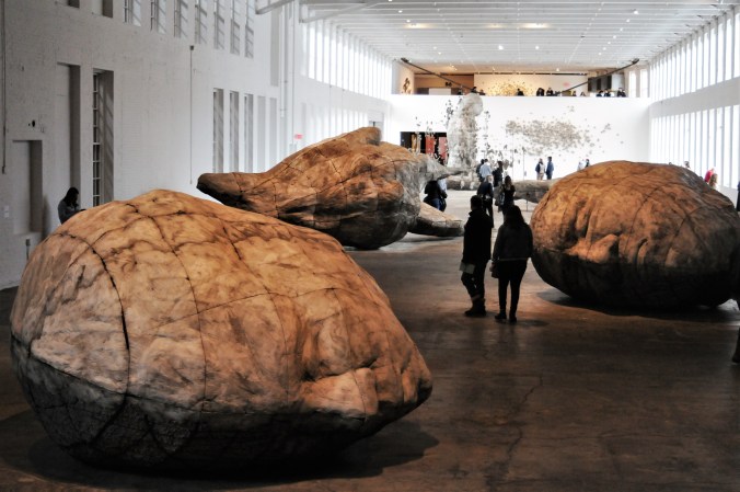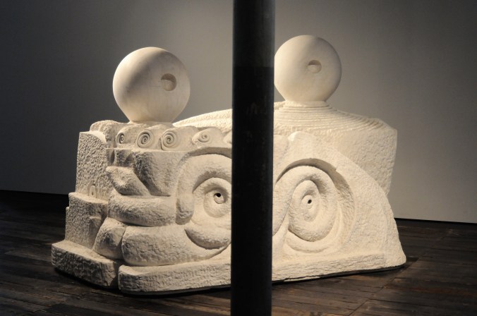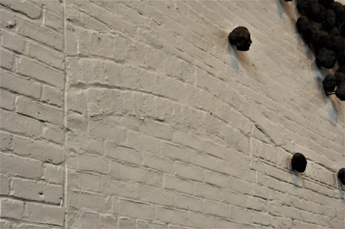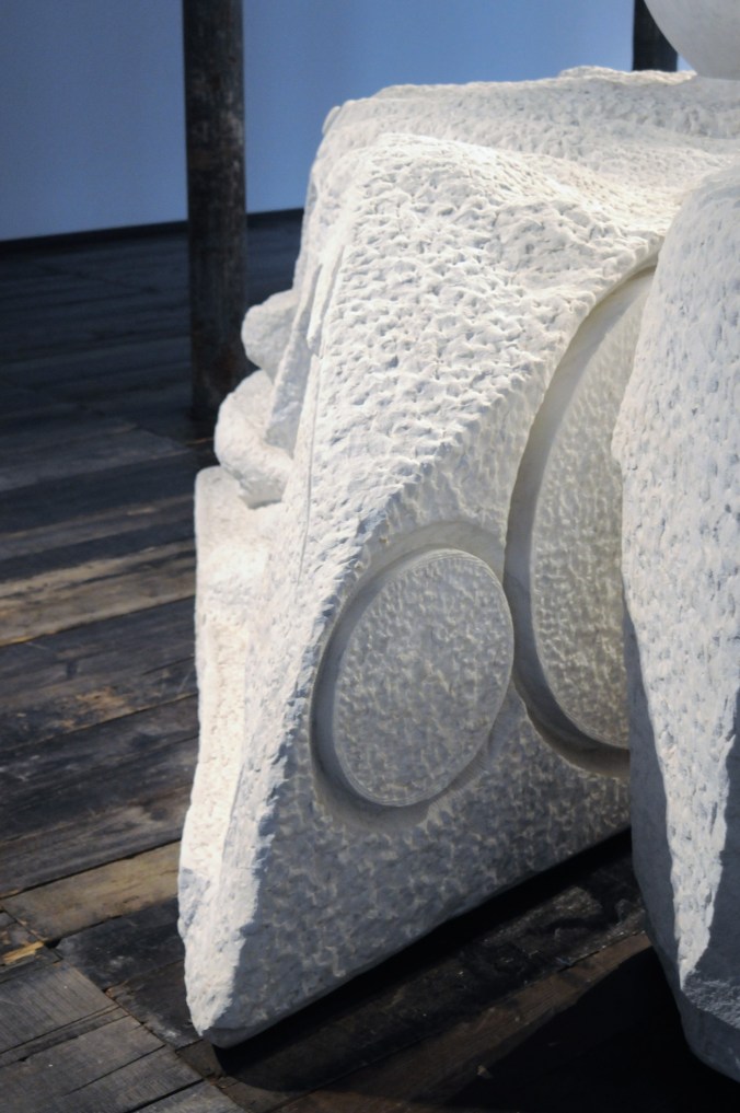 Probably my favorite exhibit is Ledelle Moe’s When, a collection of massive forms in concrete and steel. From the text: “Moe’s hollow, imperfect figures—fallen, recumbent, disembodied, marked, and scarred with the traces of their making and aging—subvert the usual characteristics of traditional monuments and memorials. [They] prompt questions about whom we choose to honor and remember and how.”