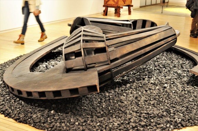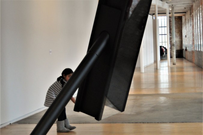 A long corridor holds several massive and interactive sculptures by Sarah Oppenheimer; they made me think of my kiddo when he was about eight or nine, and learning about simple machines. Each one of these sculptures moves so smoothly, even a child can manipulate them.