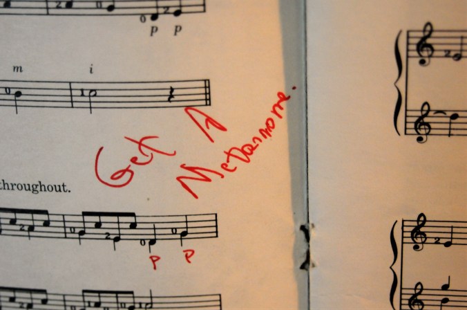 Before I started practicing in earnest I went down into the basement and fished all my old books and sheet music out of a musty box. But I decided to start with what I learned from Howard, since it’s appreciably more elementary than what Sam had me playing. Howard had notoriously awful handwriting, and some of his scrawl makes exactly no sense at all to me, especially after all these years.
