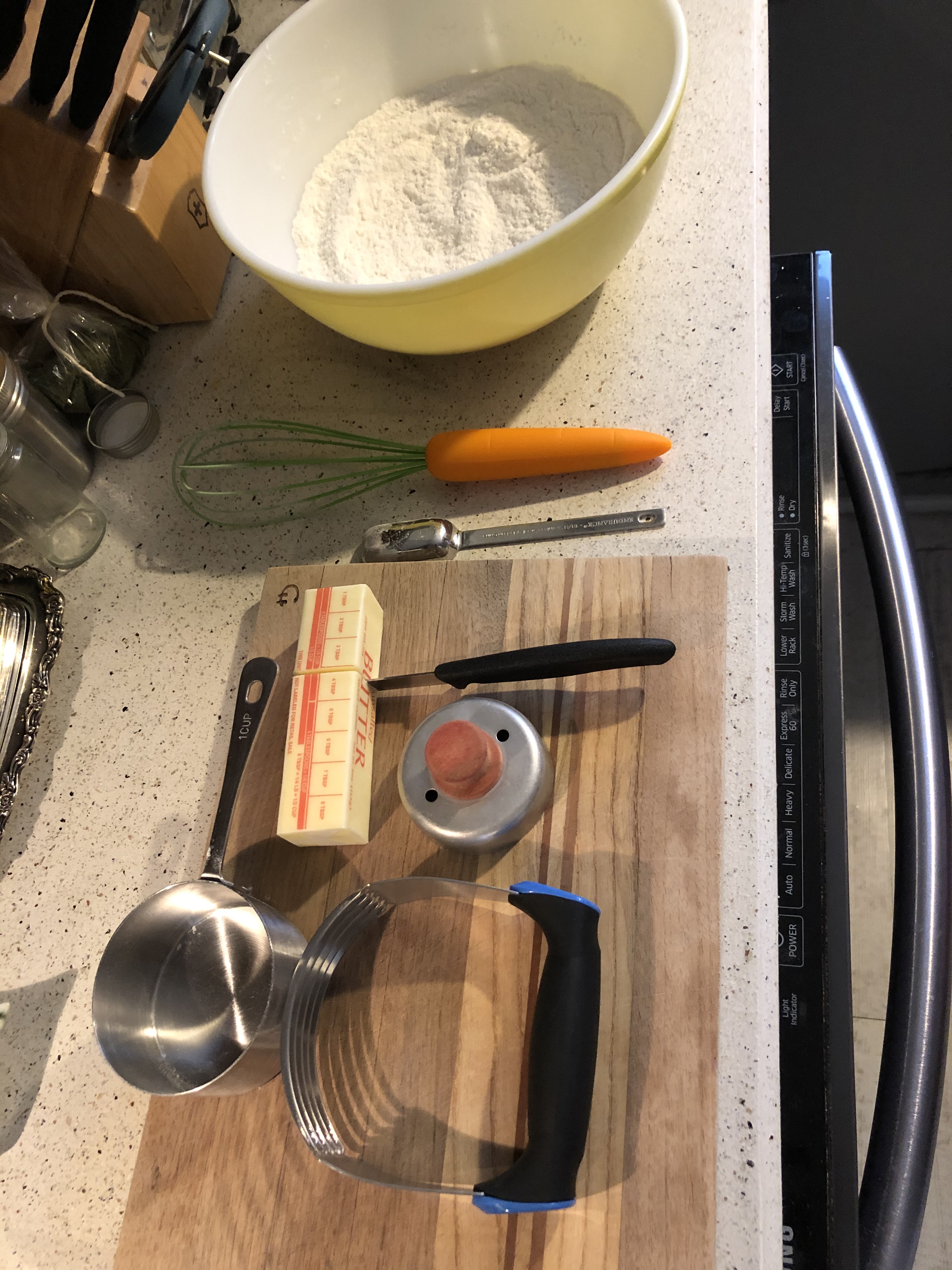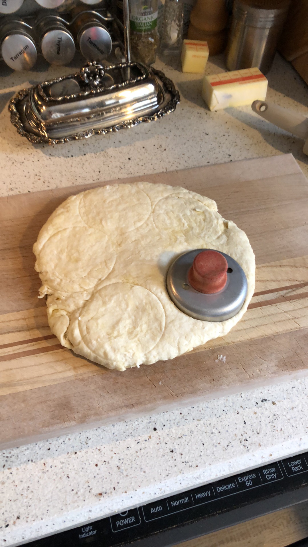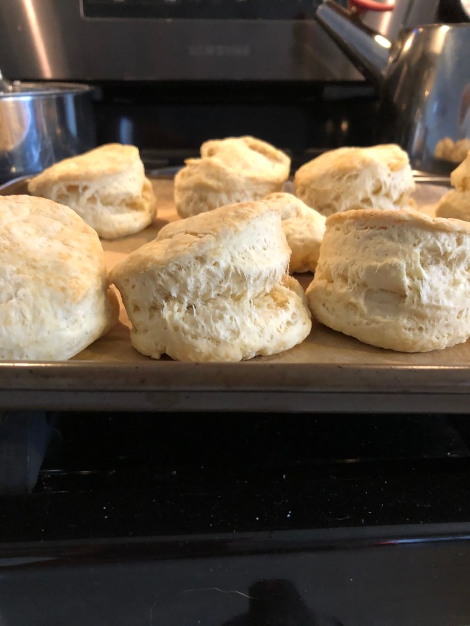 Since we’re all navigating a perilous and fraught chapter just now, and because words elude me, I decided to share with you what I shared with my kiddo. I know I’ve done them to death already, but there’s no time like the present to bake biscuits, a thing I do every Saturday morning. These are my great-grandmother Gracie’s, tweaked over the years to my own liking. I’ve omitted the personal family stuff I put in the other post, but the rest of it is unchanged. Because my young man appears to have discovered the singular joy of preparing food in his new kitchen, I decided it was high time to share this recipe with him. Here it is for you, just a few simple instructions, and some unedited photos I made on my iPhone while I was preparing the dough and baking.