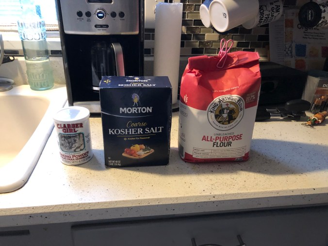 1. Start with those three ^ ingredients. You’ll need 2 cups of flour, 1 teaspoon of salt, and 1 heaping tablespoon of baking powder. Tump all of it into a big bowl and mix it with a whisk. (Nota bene: Tump, in case you didn’t know, is a perfectly legitimate Southern verb that means dump, but has a little more personality to it.)