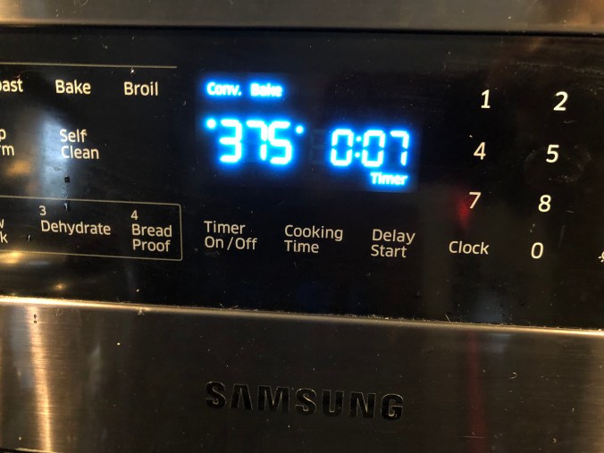 This is also the point when you’ll want to prepare your baking sheet and set your oven temp to 375 degrees.